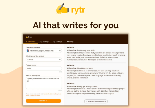 Free AI Tools: Rytr.me, Copy.ai, WriteSonic